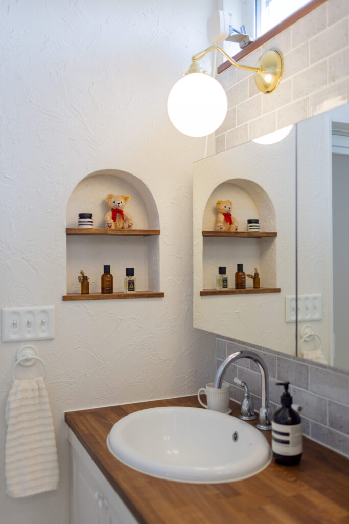 見どころ➂|心ときめく「造作洗面台」と「アールの垂れ壁」