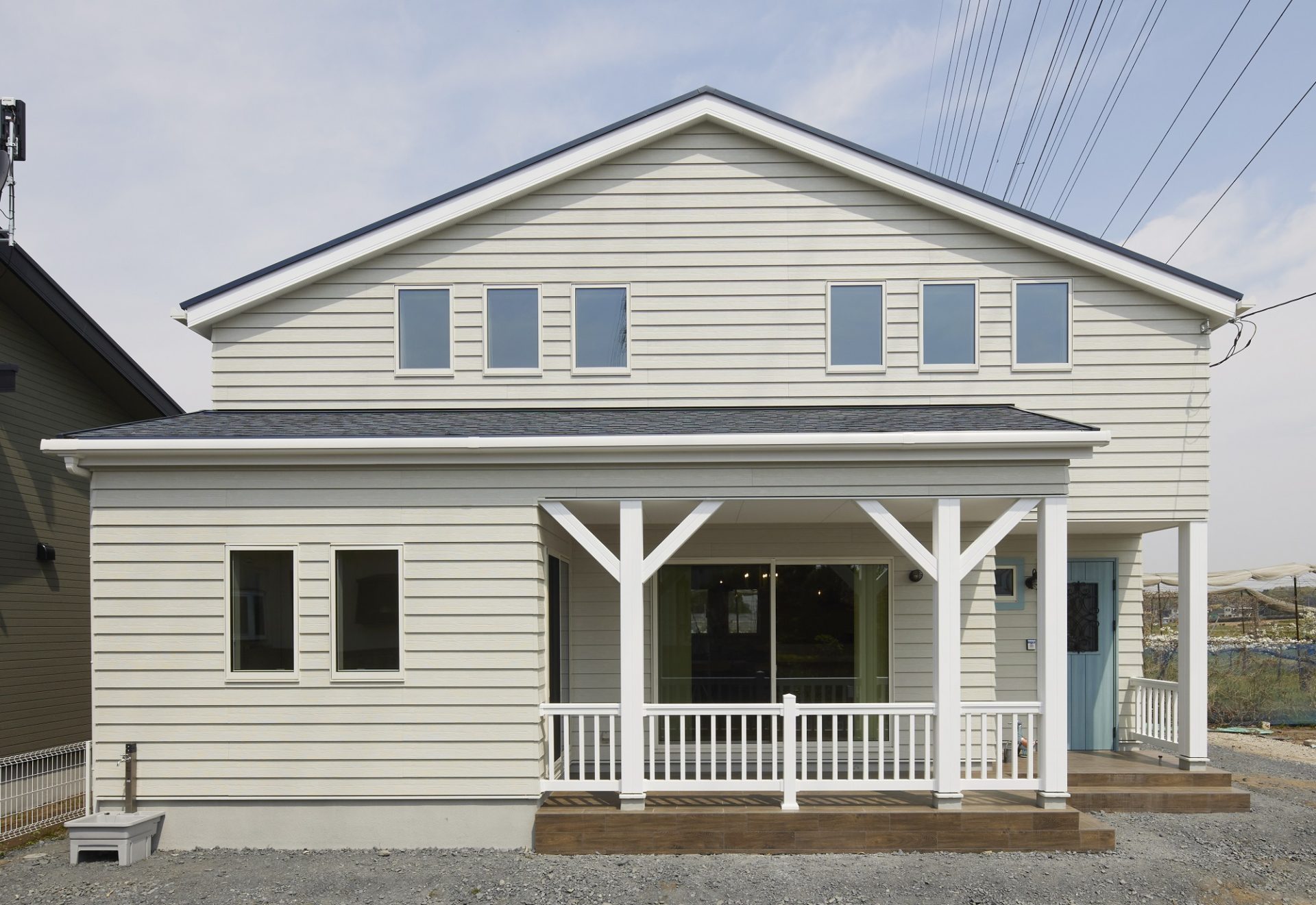 オープン階段はキッチンに立つママとお話をして頂けるようご提案致しました。主寝室の窓を開けるとカバードポーチに出られるようご提案致しました。休日のちょっとゆっくりできる朝をテラスで寛いで頂けたならと思います。玄関→シューズクローク→パントリー→キッチンとつながる動線で、お買い物後に移動を簡易にして頂けるようご提案致しました。