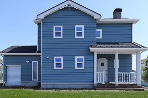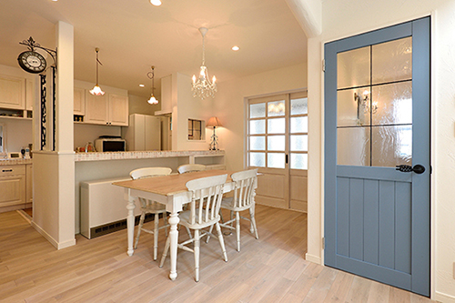 プロヴァンスに佇むような、ブルーのドアと優しいアールのある家
